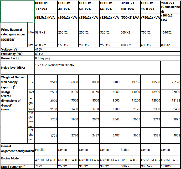 CPCB IV+ Optiprime 117 KVA to 2020 KVA