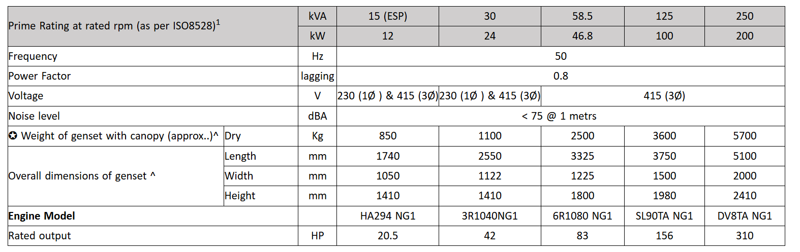 Brushless Generators for optimum performance.
